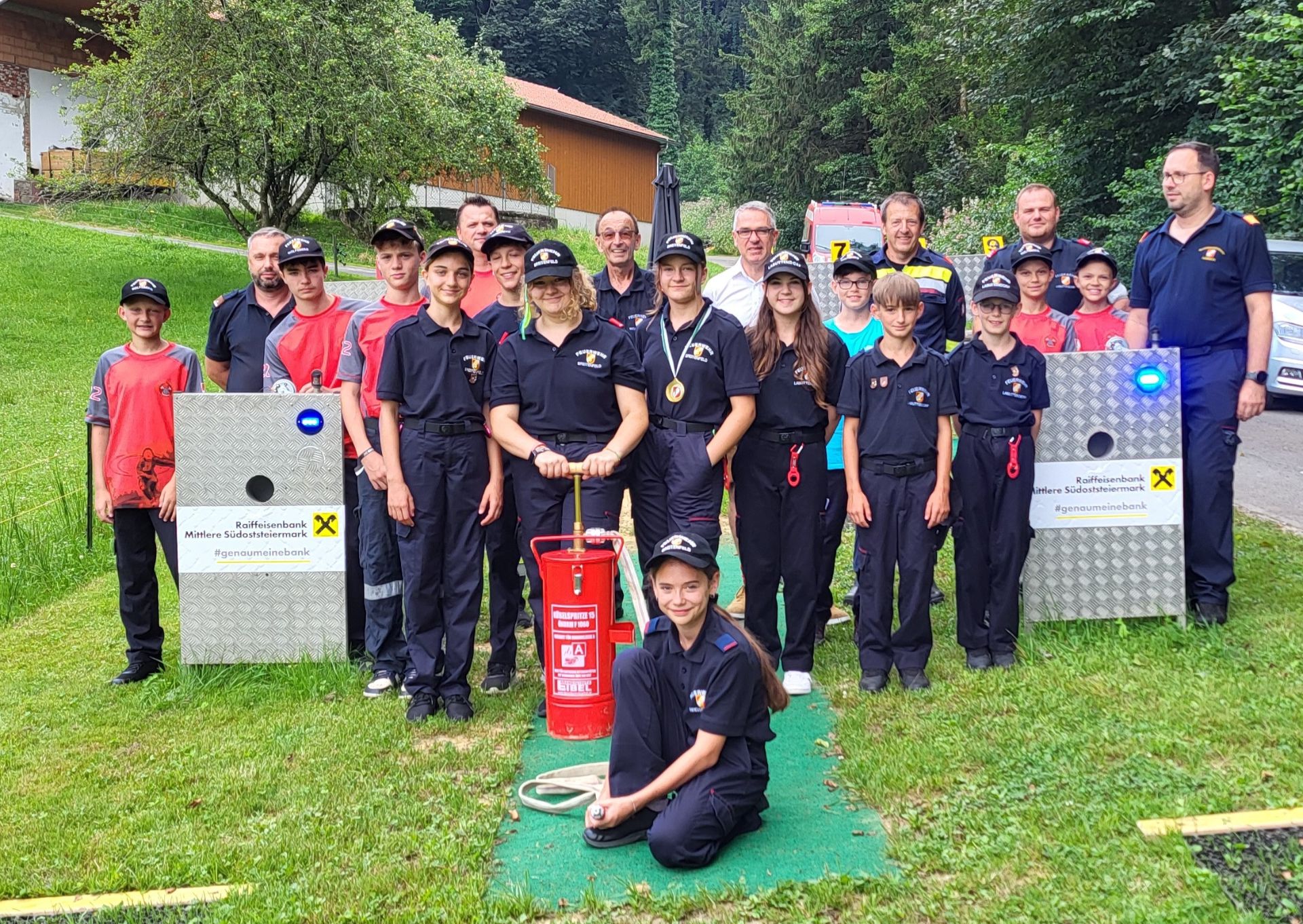 Bei den Übungen für die Jugendbewerbe - wo wir tolle Leistungen erzielten - hatte sich gezeigt, dass die Spritzwandmodule, welche von den gesamten Feuerwehren des Abschnittes Schwarzautal genutzt werden, für eine optimales Üben aufgrund des Alters nicht mehr ideal waren. Nach einer kurzen Anfrage, hat sich die Raiffeisenbank prompt dazu bereit erklärt, die Kosten für die neuen Module in Höhe von € 1.100,-- zu übernehmen. Wir danken an dieser Stelle ganz herzlichst für diese großzügige Unterstützung für unsere Jugendarbeit, damit auch in Zukunft die Sicherheit unserer Bevölkerung durch dementsprechenden Nachwuchs gewährleistet ist!