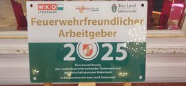 Die seltene Auszeichnung "Feuerwehrfreundlicher Arbeitgeber" erhalten Betriebe, die sich in besonders großem Maße für das Feuerwehrwesen engagieren, sei es durch Dienstfreistellungen von Mitarbeitern im Einsatzfalle, aber auch in finanzieller Hinsicht.