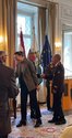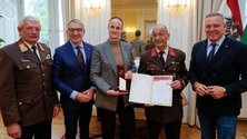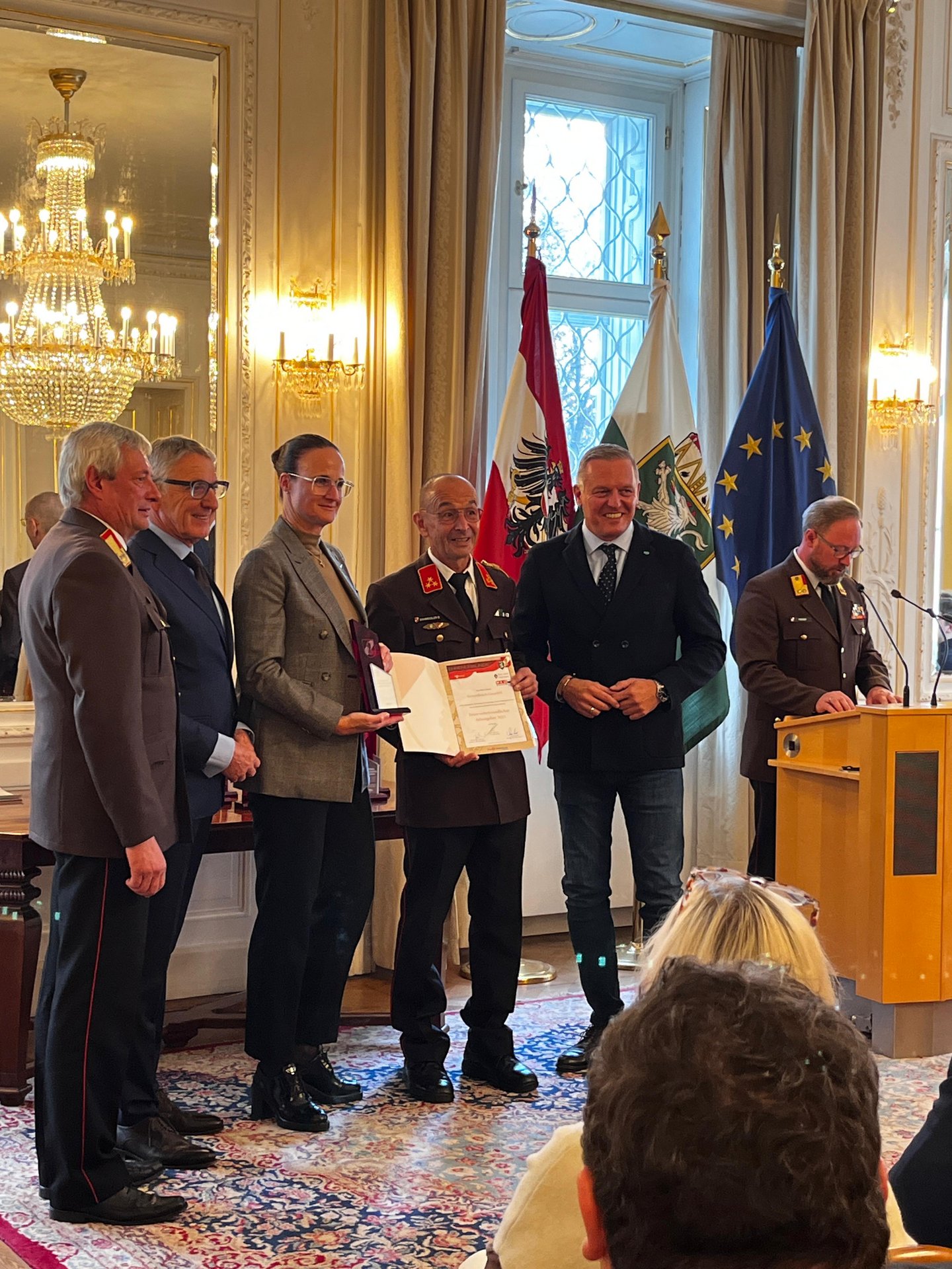 Heute durfte die Fa. Steirerfleisch mit Firmeninhaberin Karoline Scheucher (ihr Gatte Mag. Alois Strohmeier war leider durch einen Auslandsaufenthalt mit einer Wirtschaftsdelegation verhindert) von LH Mario Kunasek, Landesbranddirektor Reinhard Leichtfried und Ing. Josef Herk von der Wirtschaftskammer in der Grazer Burg unter der Anwesenheit von Kommandant Sepp Schweigler, sowie den Vertretern ABI Rudolf Puntigam und BR Friedrich Partl, diese besondere Auszeichnung in Empfang nehmen.