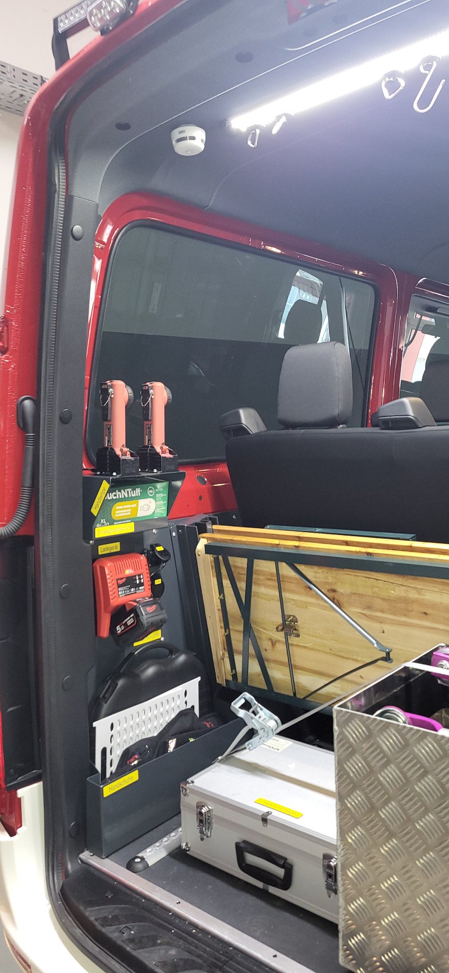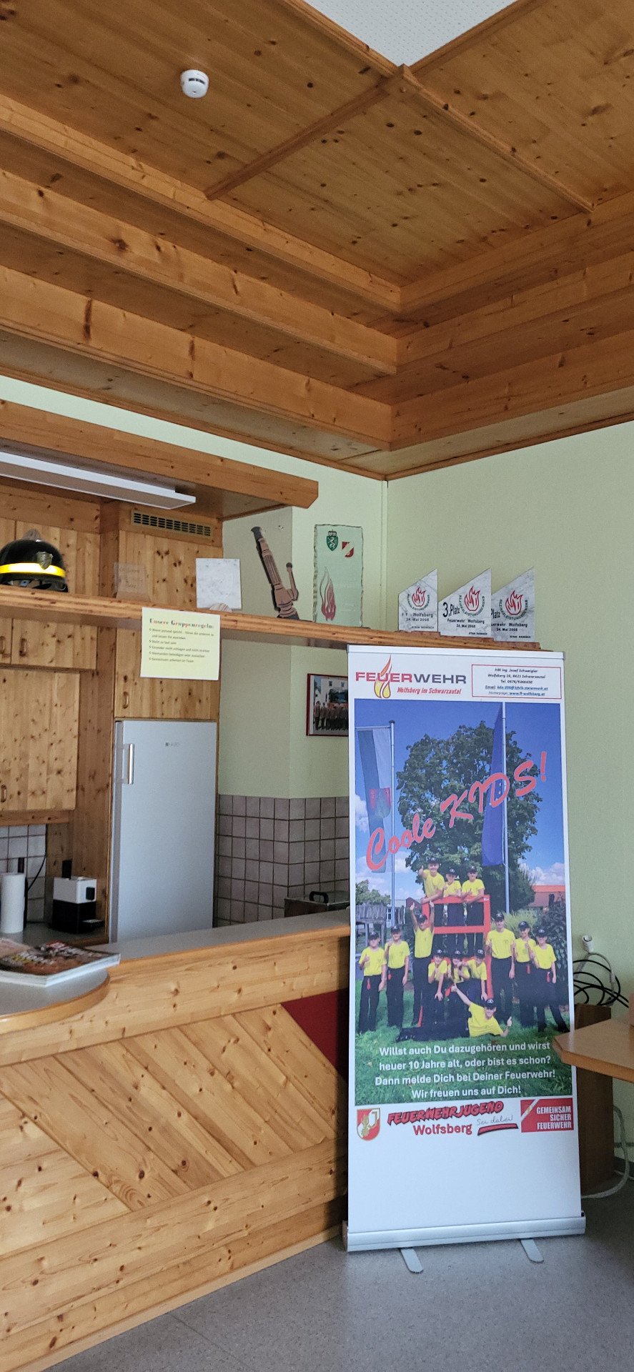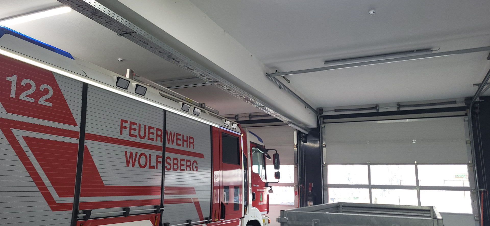 Mit geringen Investitionskosten und etwas Eigenleistung haben wir daher in sämtlichen Räumen, sowie auch in den Geräteräumen unserer Fahrzeuge, wo sich Akkugeräte befinden, ein Rauchmeldersystem installiert um uns rechtzeitig zu warnen und größere Schäden zu verhindern. Immerhin befindet sich in unserem Feuerwehrhaus ein Wert von über 1 Mio. Euro an Fahrzeugen und Ausrüstung.