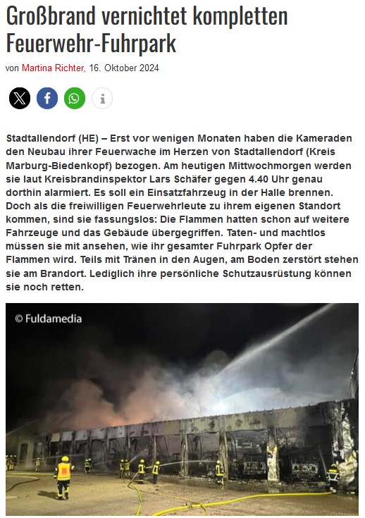 Ein Großbrand im Oktober in Deutschland, bei dem ein neu erbautes Feuerwehrhaus mit über 13 Fahrzeugen vollends in Flammen aufgegangen ist und ein Schaden von über € 20 Mio. entstanden ist, hat uns dazu bewogen, diesen Eigenschutz auch bei uns zu installieren.