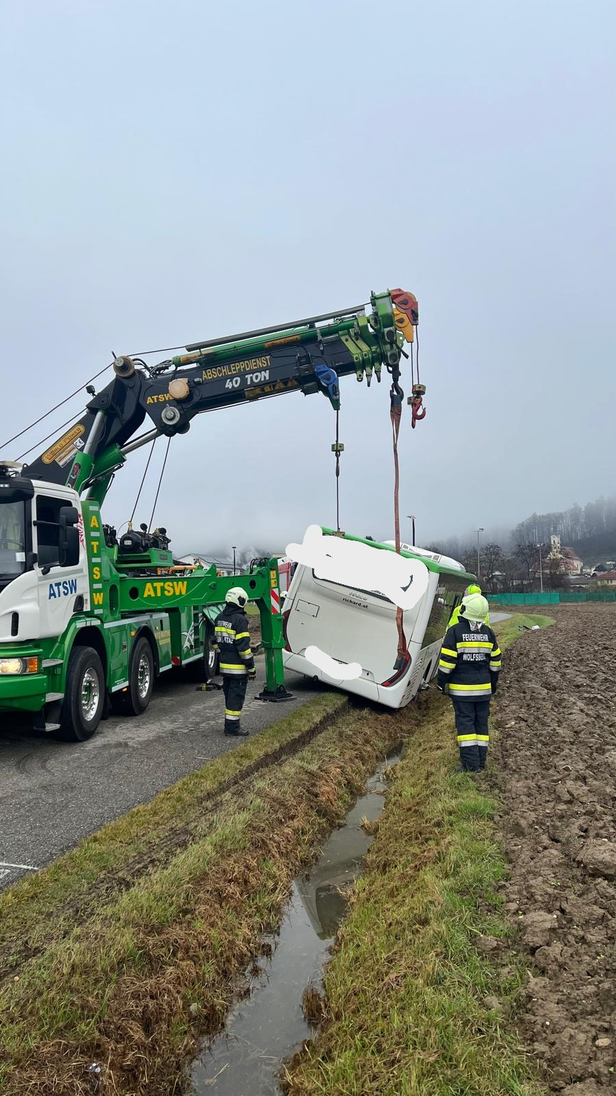 Um 8:39 Uhr wurden wir heute zu einer Busbergung am Kläranlagenweg alarmiert. Glücklicherweise waren keine Fahrgäste an Bord und auch der Busfahrer unverletzt. Nach Nachalarmierung des SRF Leibnitz musste festgestellt werden, dass eine gesicherte Bergung des Fahrzeuges nur durch eine Spezialfirma möglich war, welche dann von unserer Einsatzleitung über die Landesleitzentrale nach Abklärung mit der Busfirma angefordert wurde. Letztendlich konnte der Bus dann nach einiger Zeit wieder auf gesicherte Wege gebracht werden.