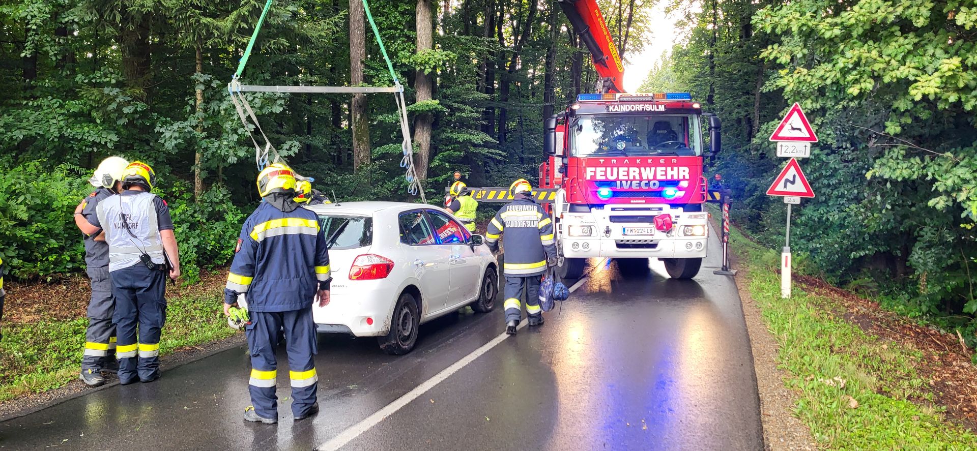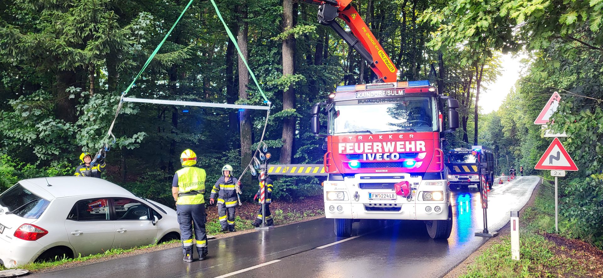 Am frühen Abend sind wir dann zum gemeinsamen Besuch des oben erwähnten Festes unserer Nachbarwehr ausgerückt. Während wir uns dort gerade unser Essen gönnten, rief uns aber unsere Sirene zu einem Verkehrsunfall nach Wölferberg, wobei es sich glücklicherweise nur um Sachschaden handelte. An dieser Stelle bedanken wir uns bei unseren Kameraden der FF Kaindorf für die Einsatzunterstützung mit ihrem WLF-K, möchten aber auch der FF Breitenfeld zu ihrem gelungenen Fest mit dem tollen Rahmen- und Kinderprogramm recht herzlich gratulieren, welches wir natürlich nach Einsatzende wieder besuchten.