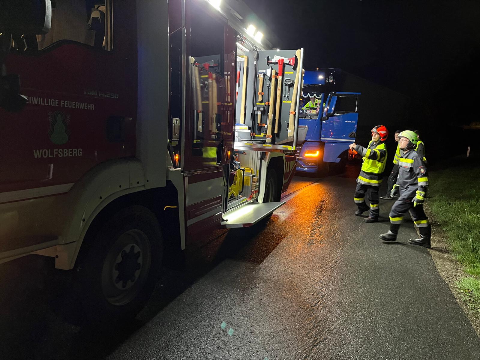 Kurz vor der Nachtruhe wurden wir mittels Sirenenalarm zur Bergung eines, mit Schweinehälften beladenen, Sattelschleppers in Wölferberg gerufen, welchen wir rasch aus seiner misslichen Lage befreien konnten.