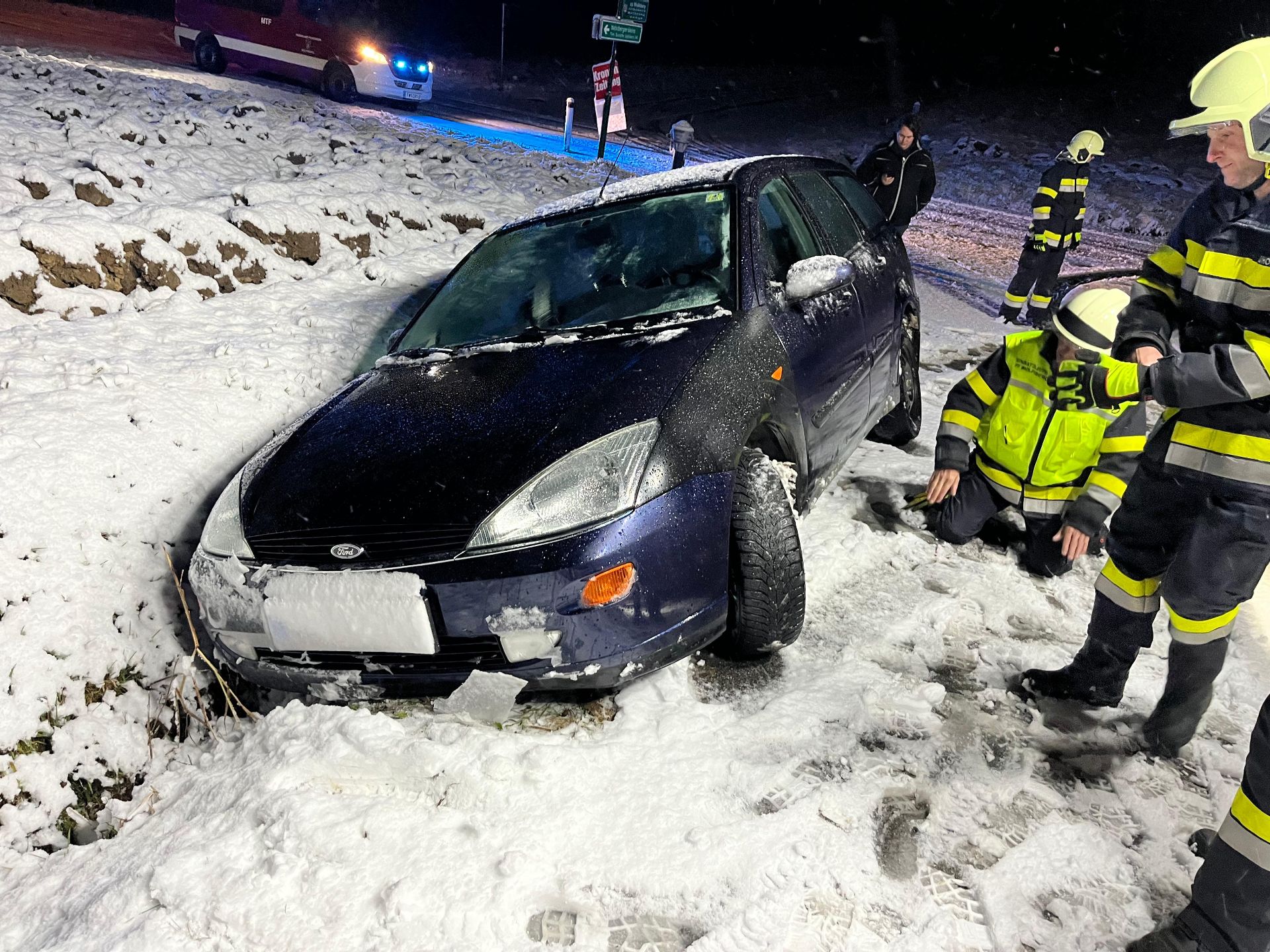 "Schneechaos" - PKW im Graben